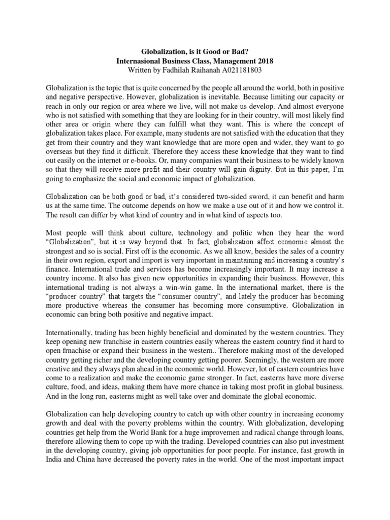 Is Globalization Good Or Bad Pdf Globalization Developing Country